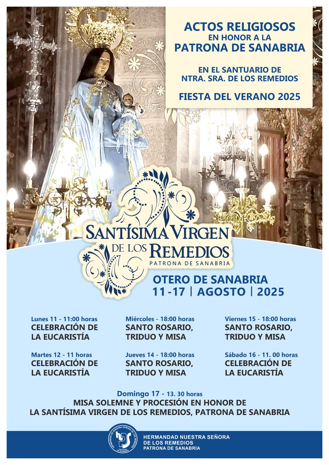 La hermandad de Ntra. Sra. de los Remedios le invita a participar en los actos de culto que tendrán lugar en los próximos días del mes de agosto en el Santuario de Ntra. Sra. de los Remedios.